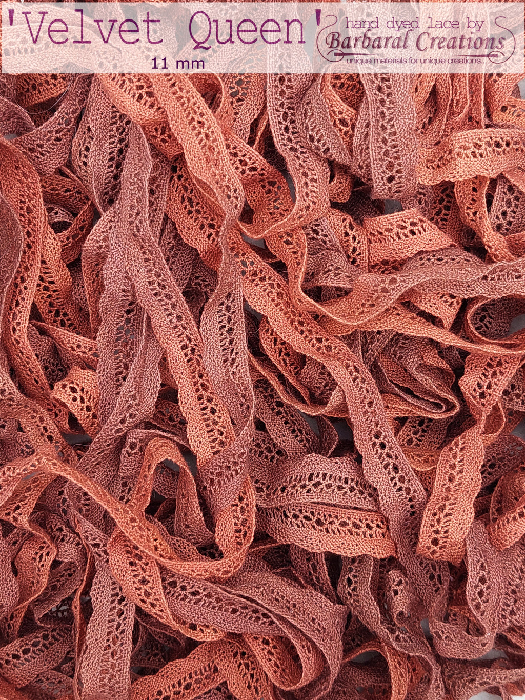 Hand dyed cotton lace 11 mm wide - Velvet Queen 2 yard - 2 m