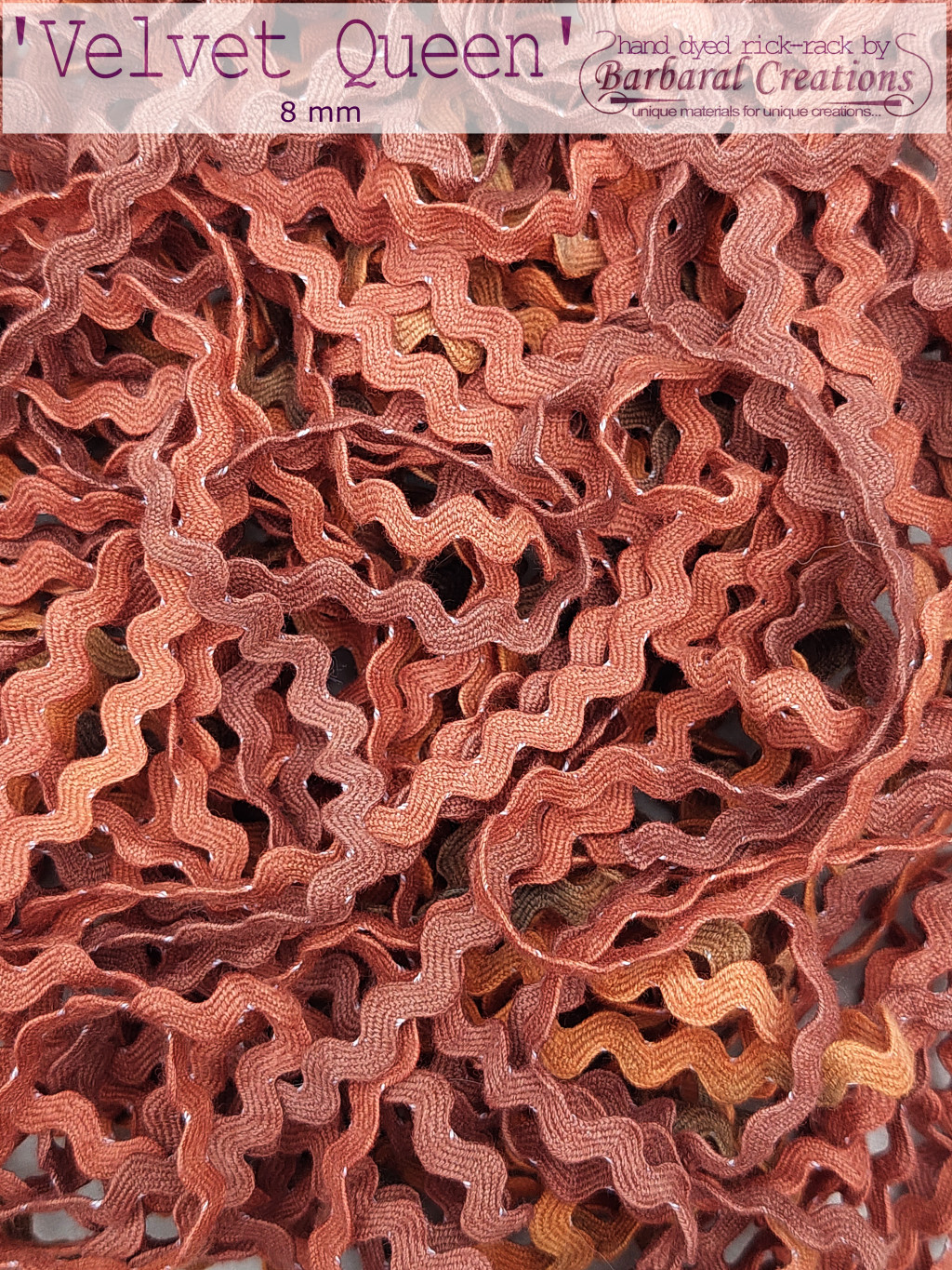 Hand dyed cotton rick-rack, 8 mm wide - Velvet Queen 2 yard - 2 m