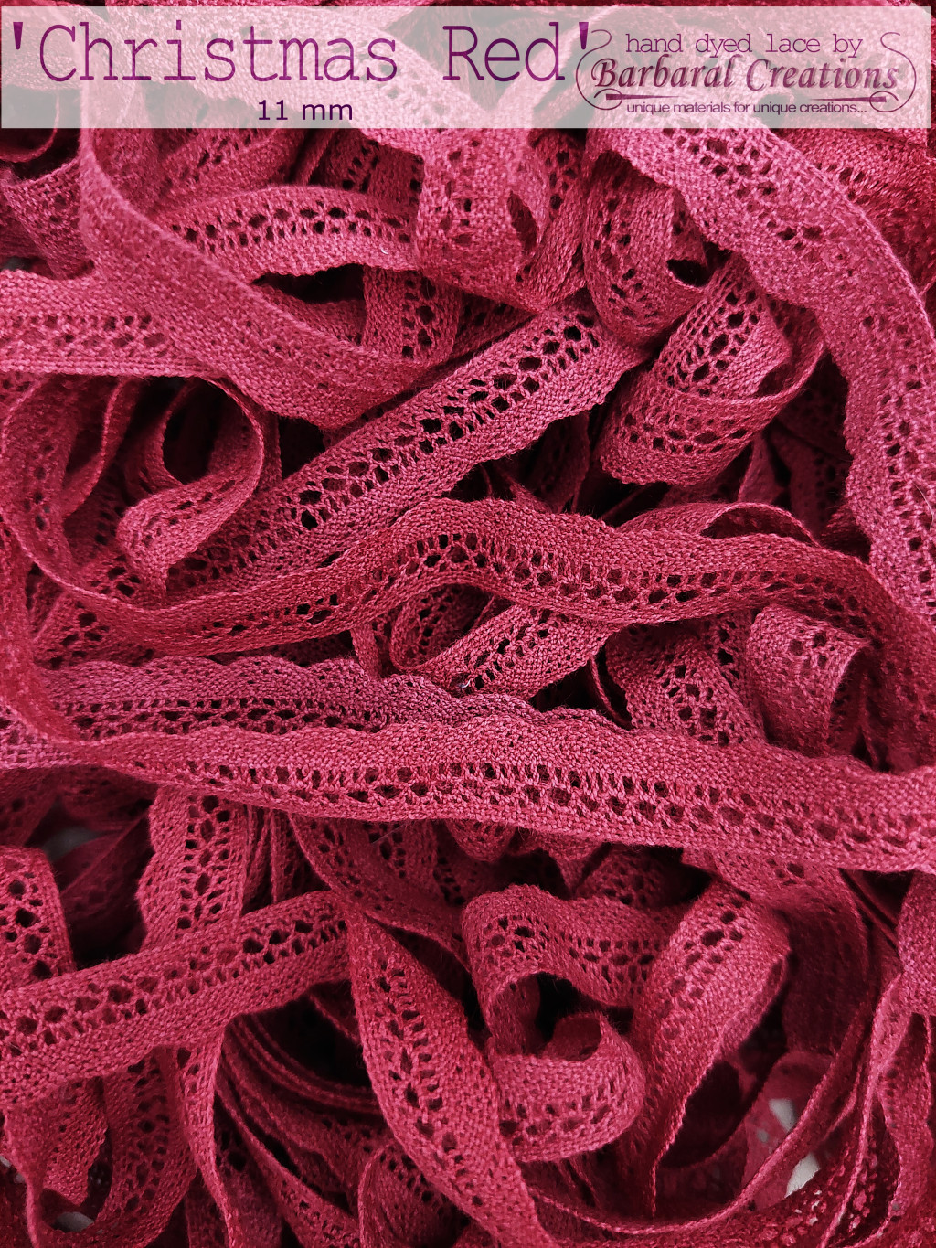Hand dyed cotton lace 11 mm wide - Christmas Red 2 yard - 2 m