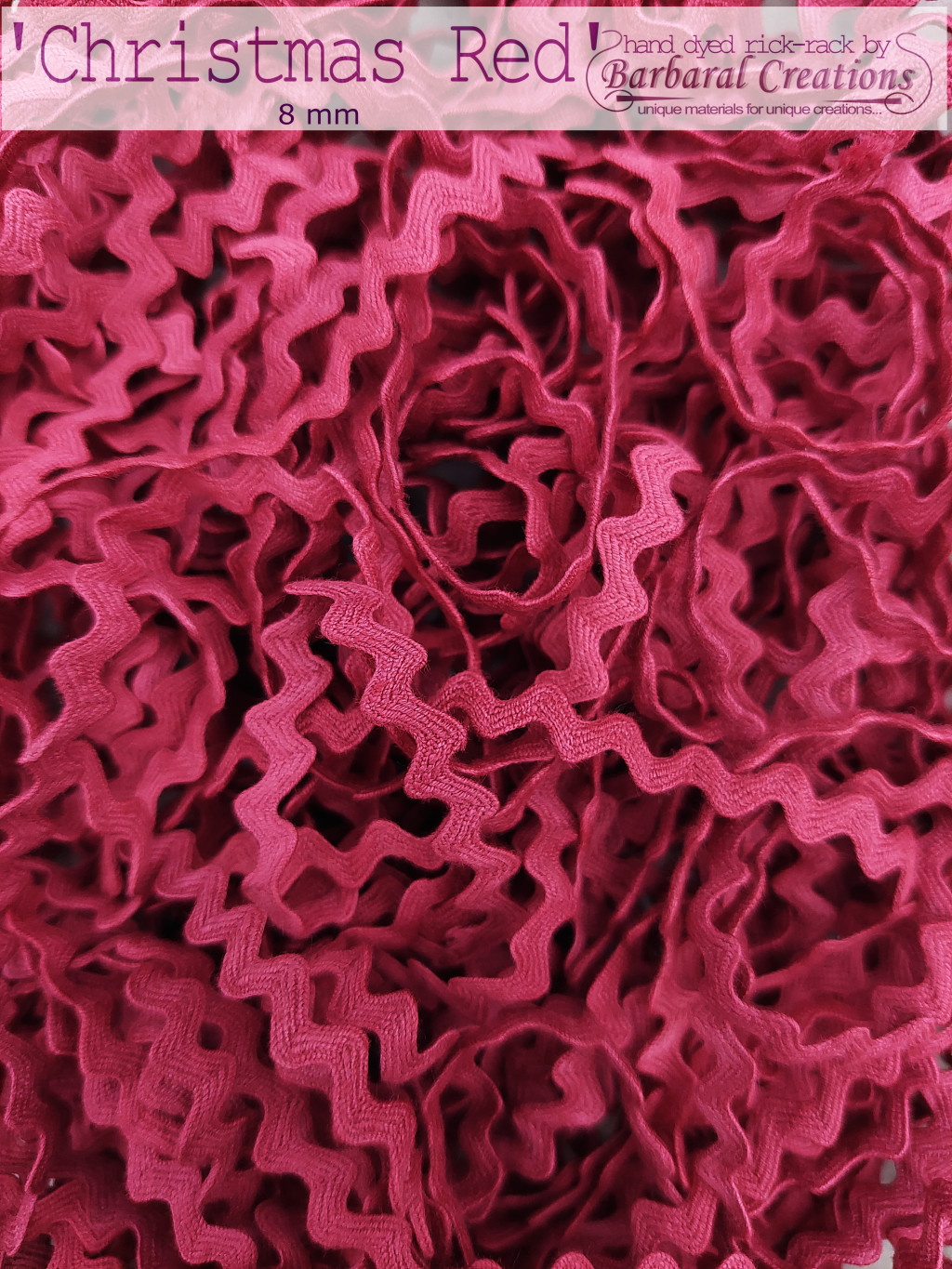 Hand dyed cotton rick-rack, 8 mm wide - Christmas Red 2 yard - 2 m